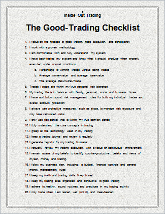 Download and make use of the Good Trading Checklist - 20 specific items to incorporate into your trading to ensure that you're bringing your best self and your "A-Game" every day!